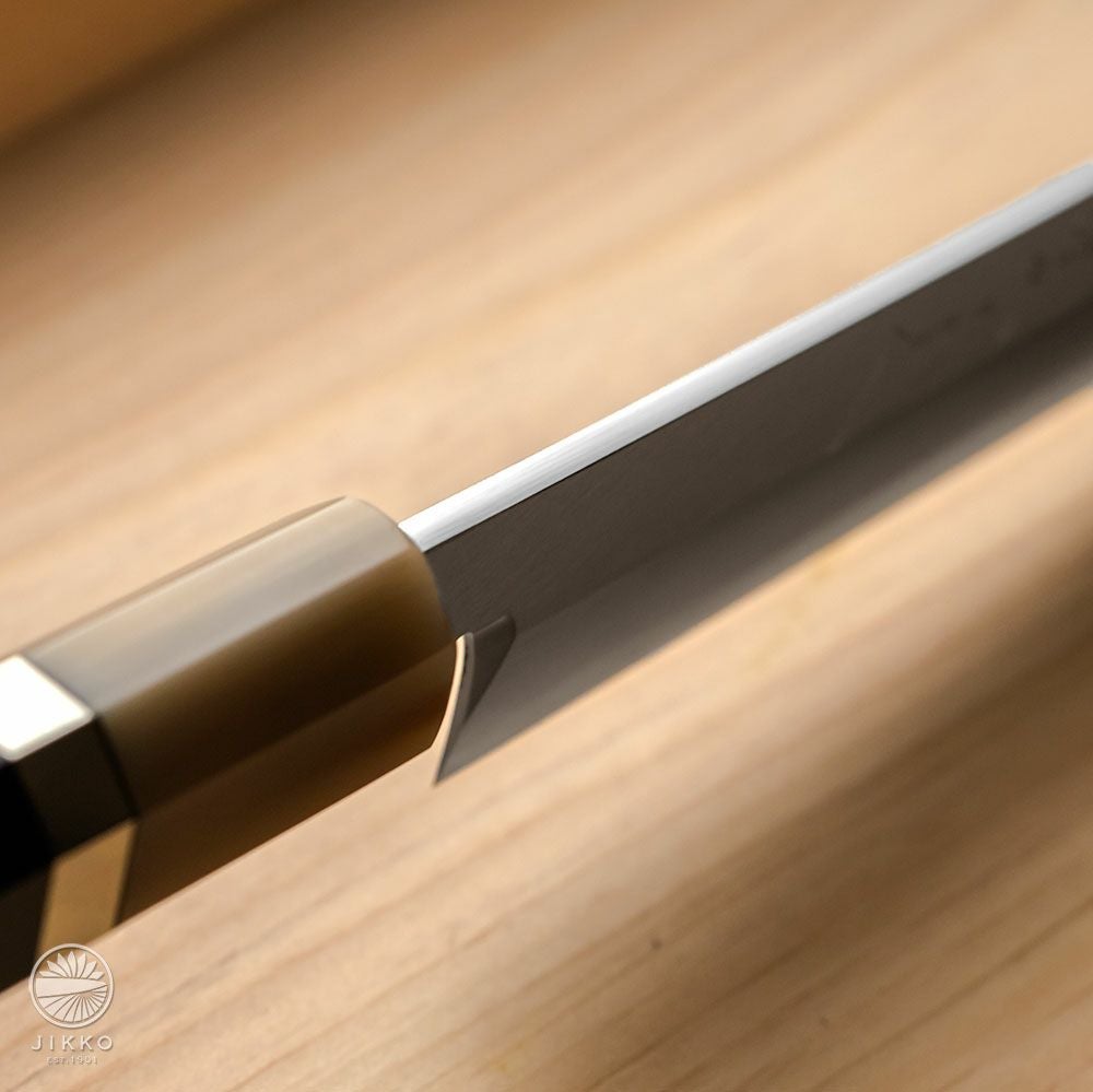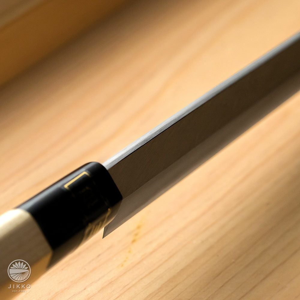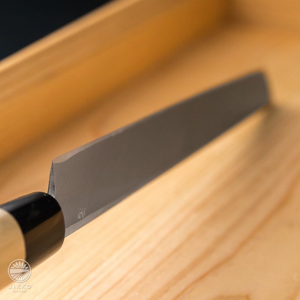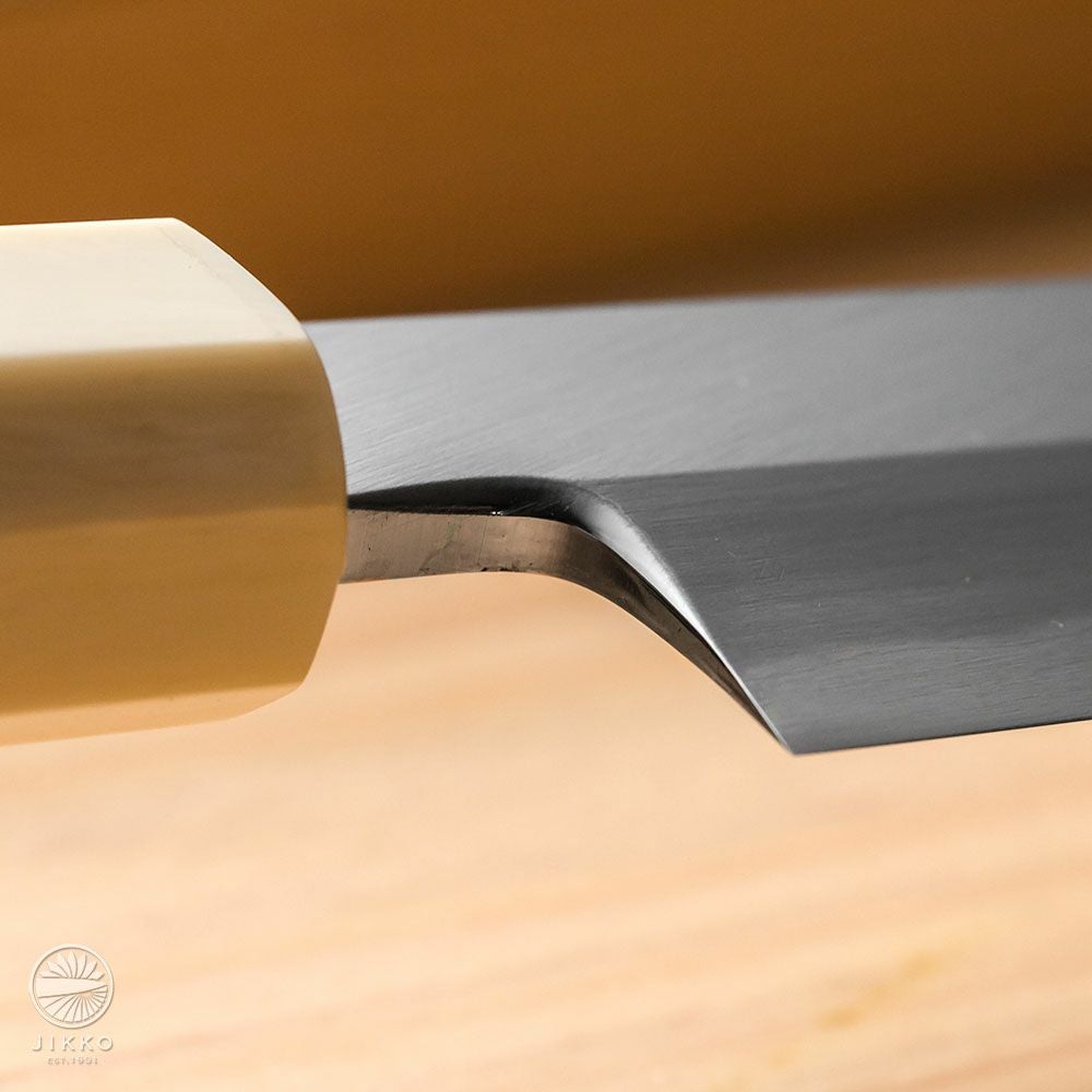 他の画像を見る 【銀座 白】先丸刺身包丁 白紙2号 先丸 黒染 当店価格 ¥ 64,020 税込 +詳しく見る 刃の表面を黒く染めているので、カッコいいデザインに仕上げています。切れ味と研ぎやすさを兼ね備えた白紙2号で製造しているので料理人にお勧めです。 詳細を見る お気に入りに登録する