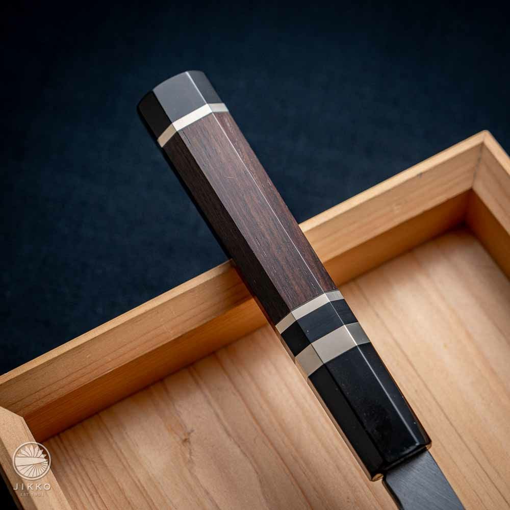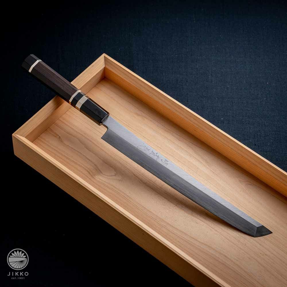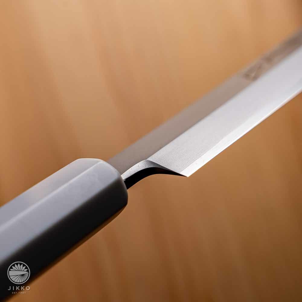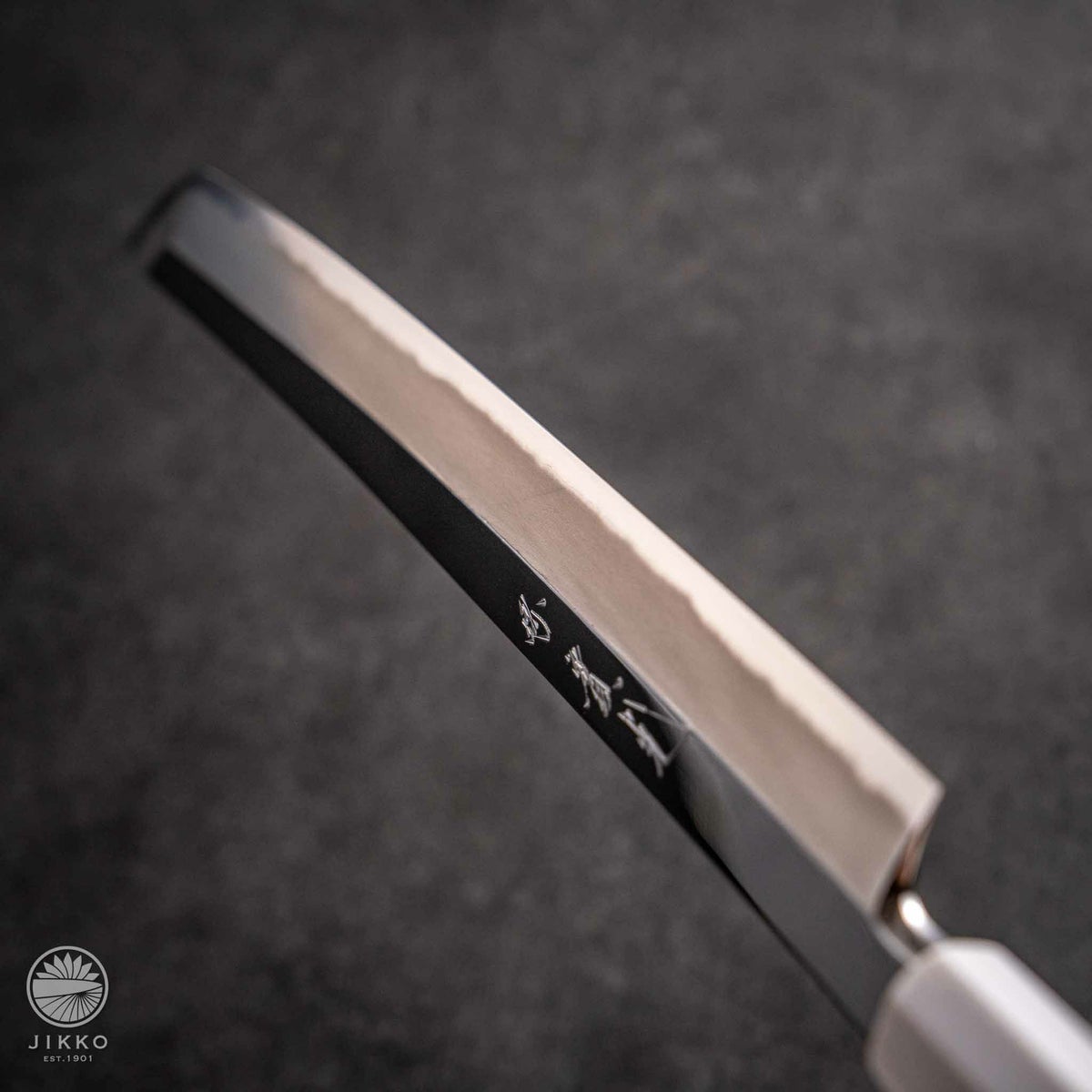 他の画像を見る 【銀座 白】先丸刺身包丁 白紙2号 先丸 黒染 当店価格 ¥ 64,020 税込 +詳しく見る 刃の表面を黒く染めているので、カッコいいデザインに仕上げています。切れ味と研ぎやすさを兼ね備えた白紙2号で製造しているので料理人にお勧めです。 詳細を見る お気に入りに登録する