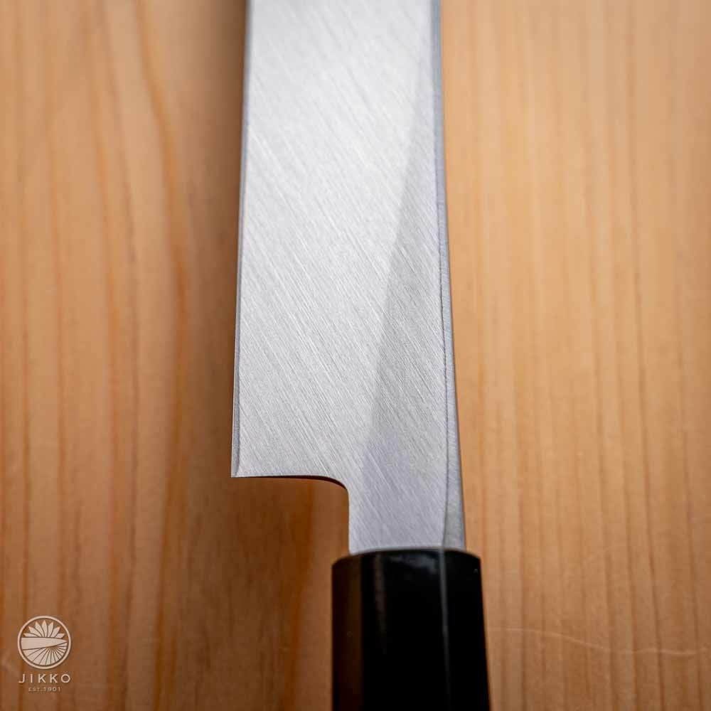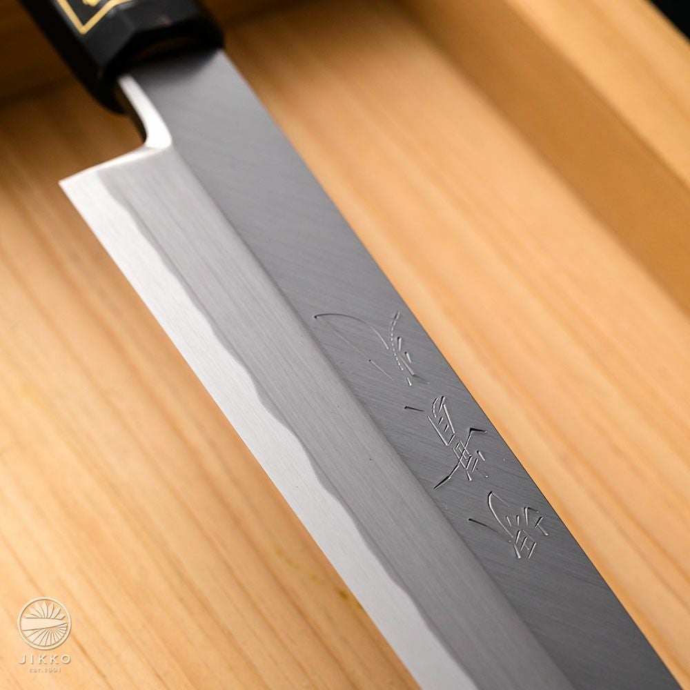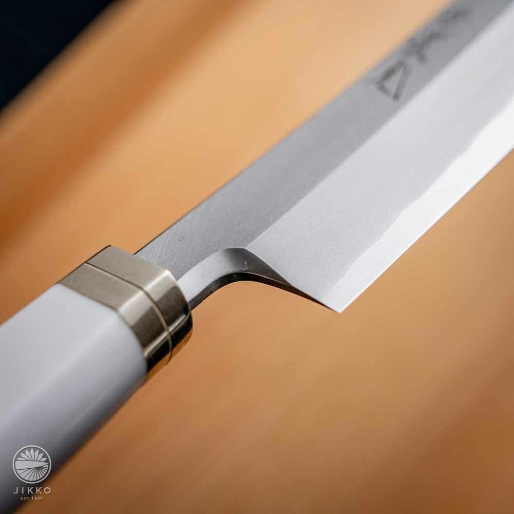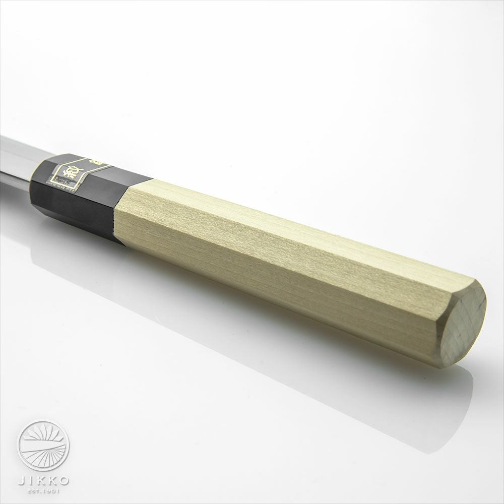 他の画像を見る 【刃 Yaiba 白】 先丸刺身 白紙2号 本刃付け 鏡面 先丸 当店価格 ¥ 83,820 税込 +詳しく見る 實光刃物の最高級の仕上です。鏡面加工と本刃付けをしています。切れ味と研ぎやすさを兼ね備えた白紙2号で製造しているので料理人にお勧めです。 詳細を見る お気に入りに登録する