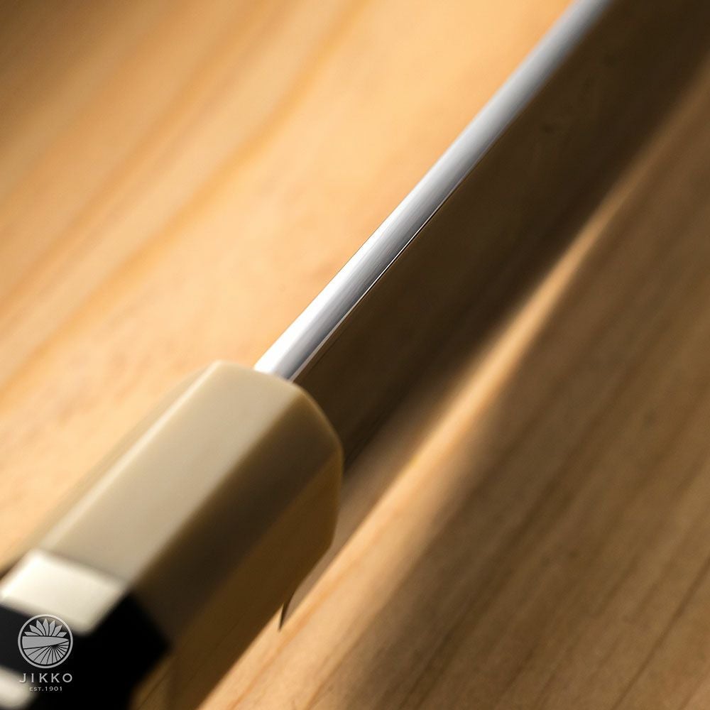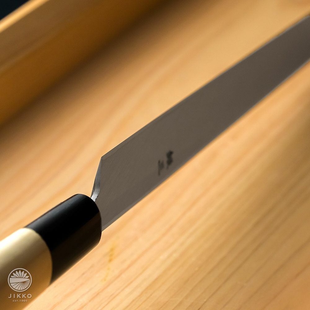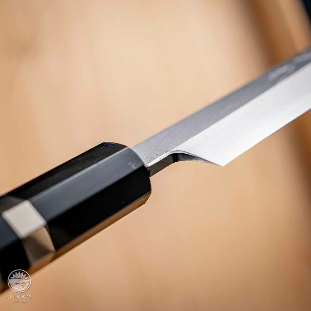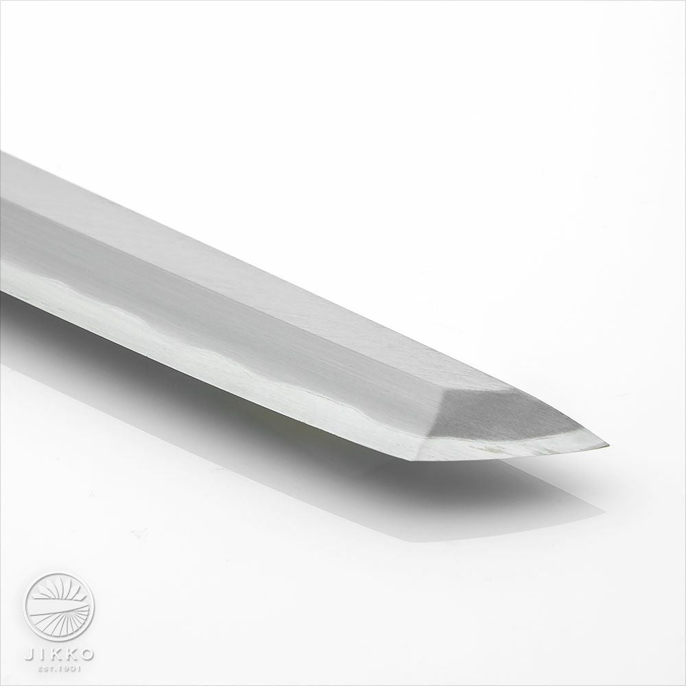 他の画像を見る 【刃 Yaiba 白】 先丸刺身 白紙2号 本刃付け 鏡面 先丸 当店価格 ¥ 83,820 税込 +詳しく見る 實光刃物の最高級の仕上です。鏡面加工と本刃付けをしています。切れ味と研ぎやすさを兼ね備えた白紙2号で製造しているので料理人にお勧めです。 詳細を見る お気に入りに登録する
