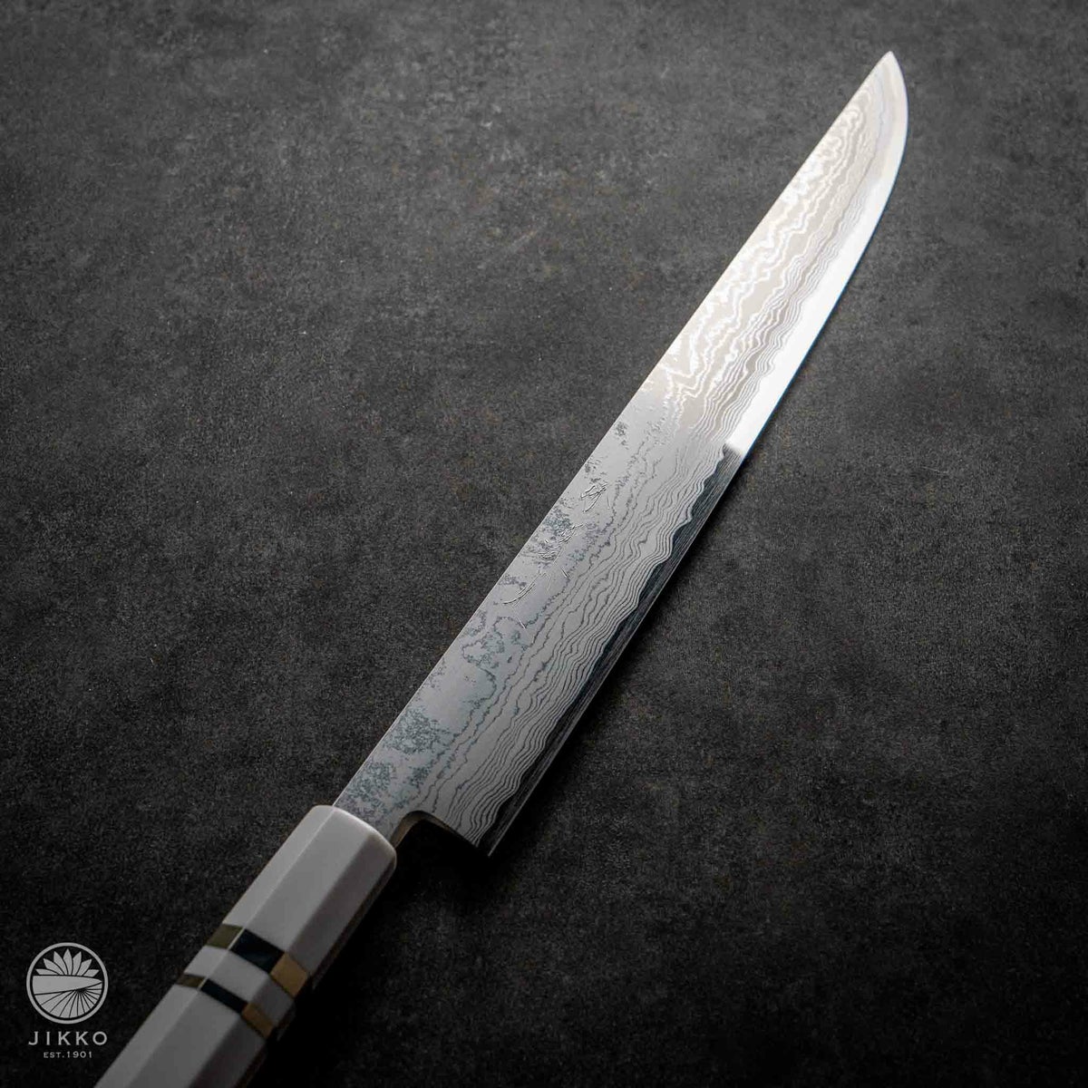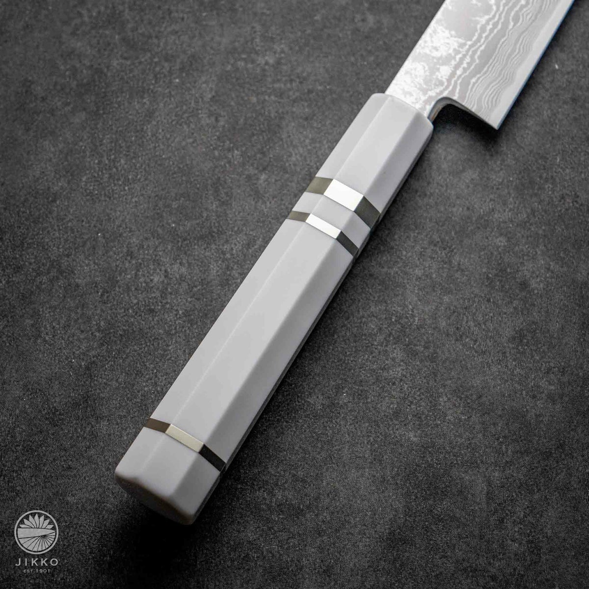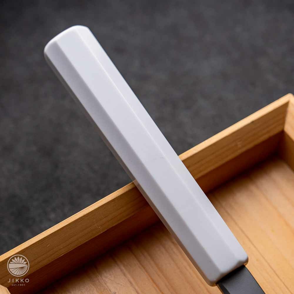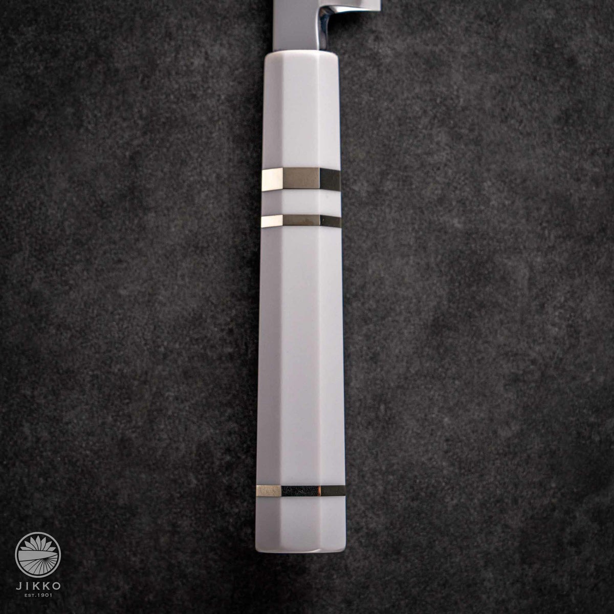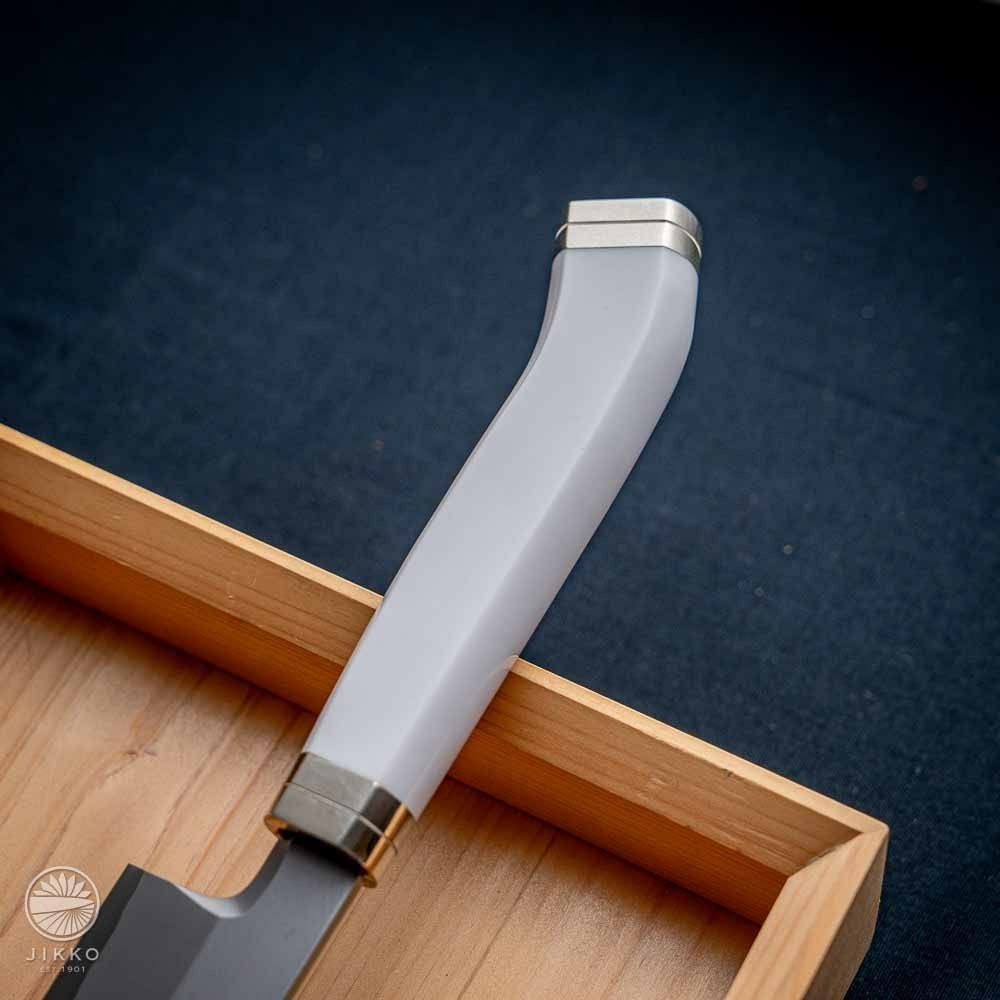 他の画像を見る 【祇園 白】 先丸刺身 白紙2号 当店価格 ¥ 55,220 税込 +詳しく見る 白を基調としたデザインになります。清潔感のあるイメージです。切れ味と研ぎやすさを兼ね備えた白紙2号で製造しているので料理人にお勧めです。 詳細を見る お気に入りに登録する