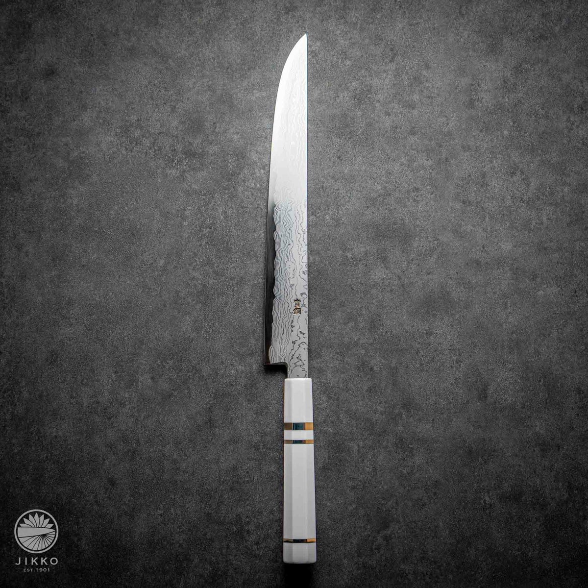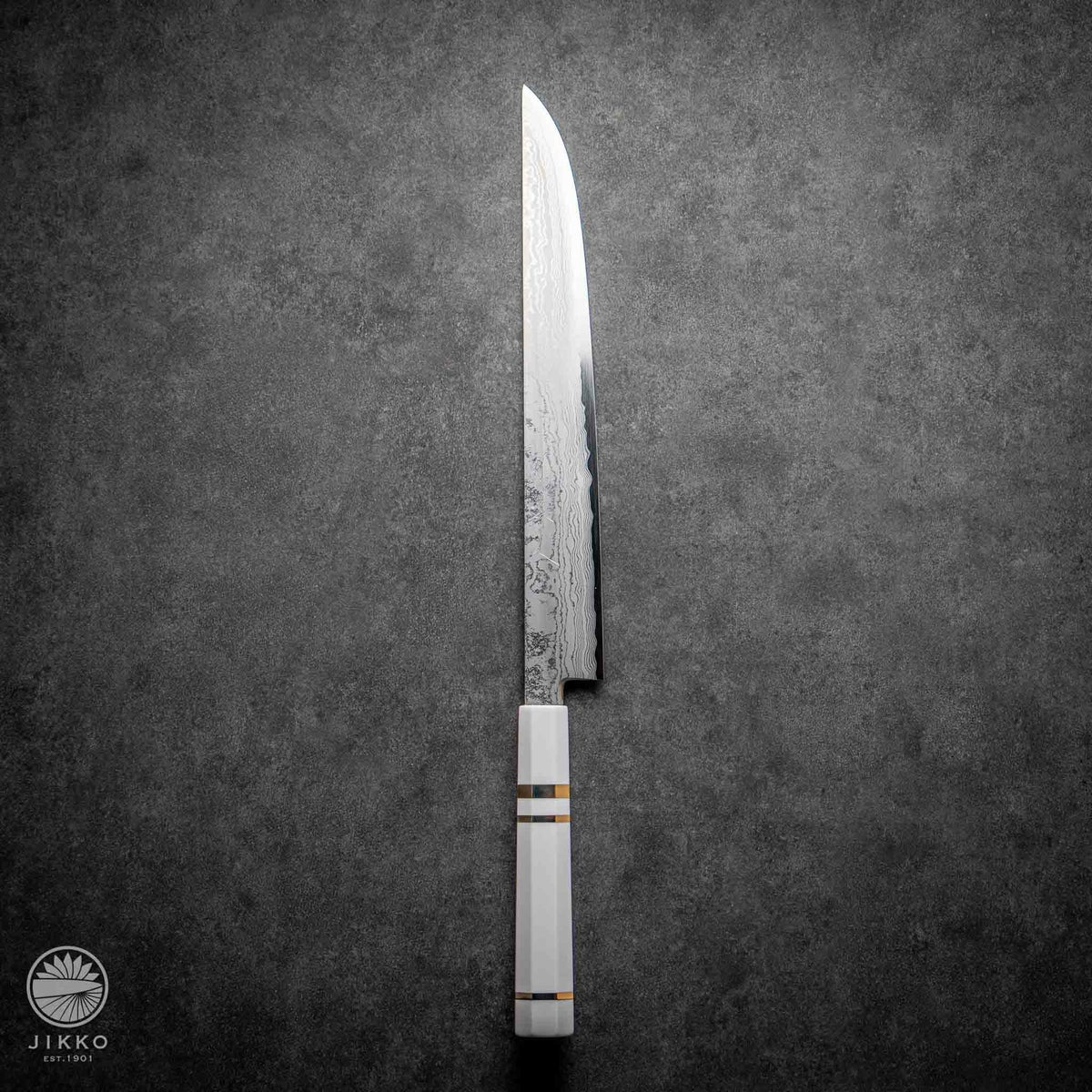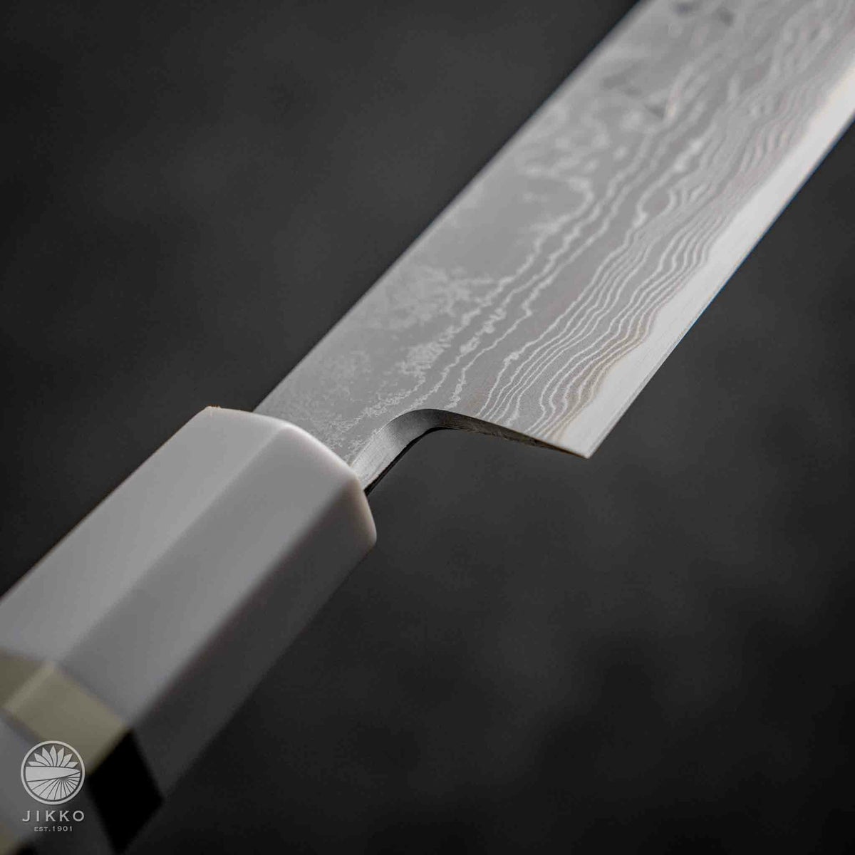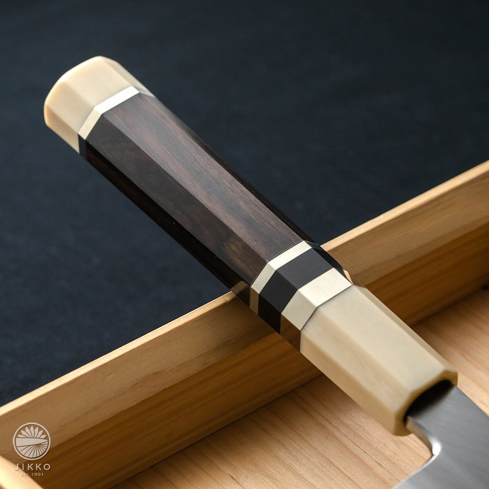 他の画像を見る 【祇園 白】 先丸刺身 白紙2号 当店価格 ¥ 55,220 税込 +詳しく見る 白を基調としたデザインになります。清潔感のあるイメージです。切れ味と研ぎやすさを兼ね備えた白紙2号で製造しているので料理人にお勧めです。 詳細を見る お気に入りに登録する