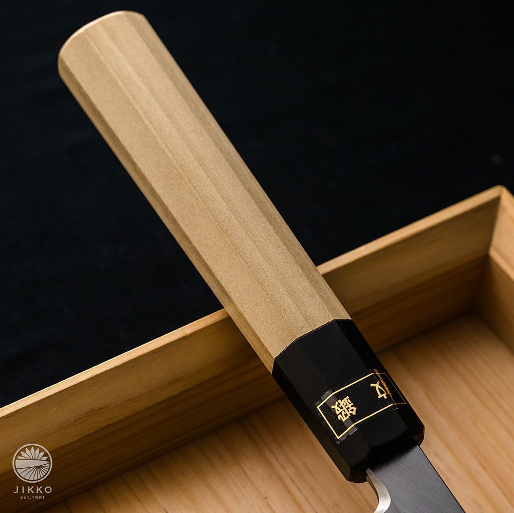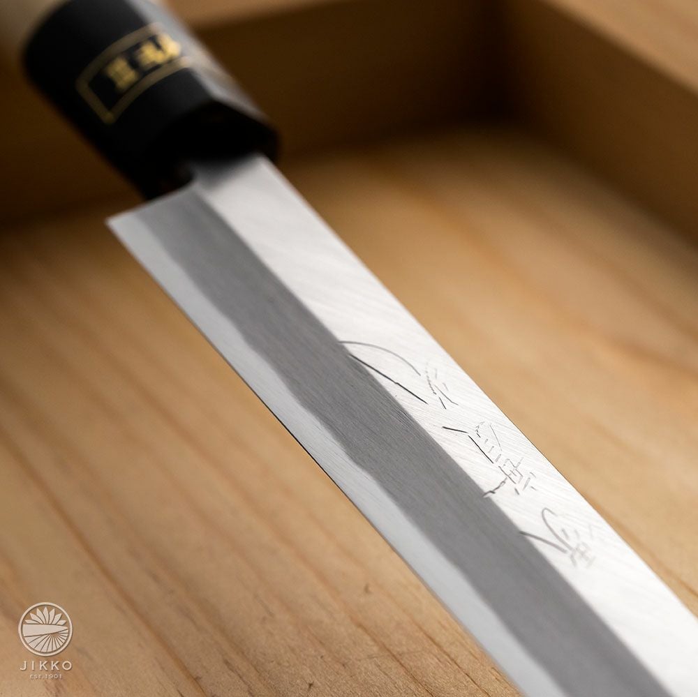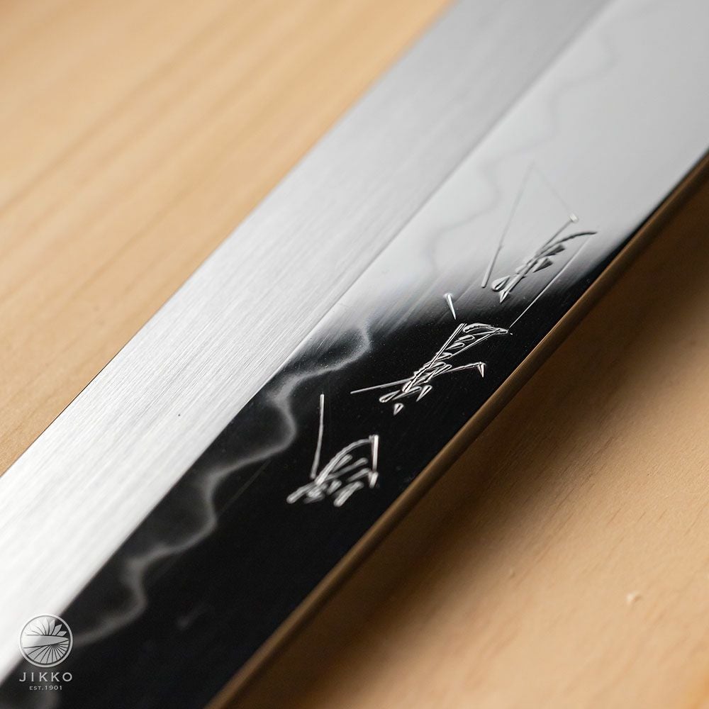 他の画像を見る 【波浮】先丸刺身包丁 白紙3号 本焼 鏡面 先丸 当店価格 ¥ 159,170 税込 +詳しく見る 紋模様の波を見やすく浮きただせています。料理人のあこがれの本焼包丁を白紙3号で製造しています。 詳細を見る お気に入りに登録する