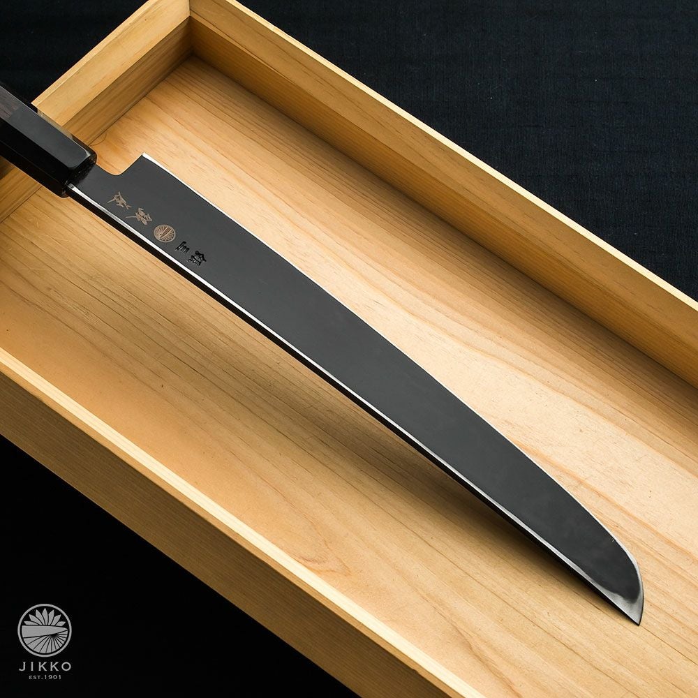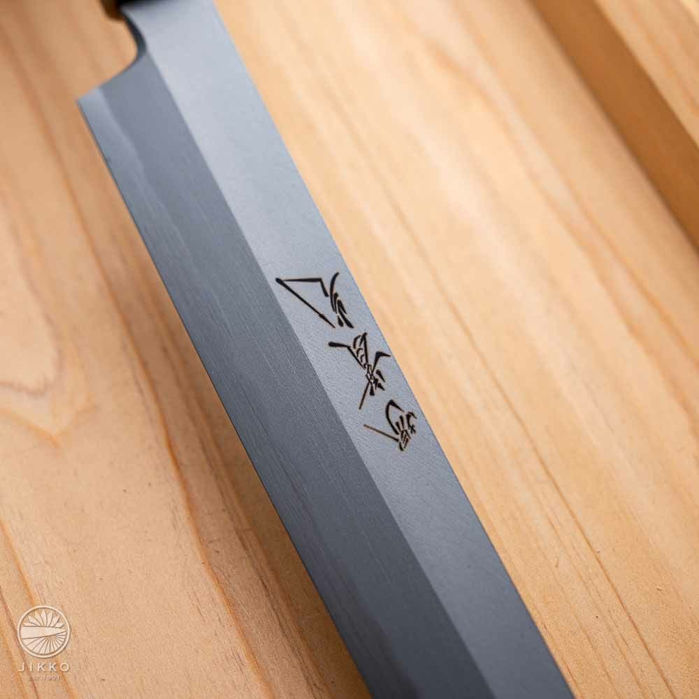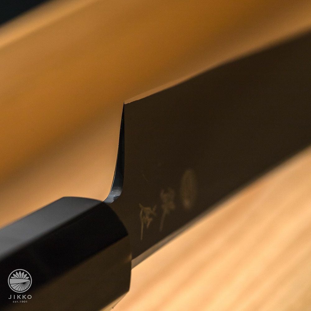 他の画像を見る 【銀座 青】先丸刺身包丁 青紙2号 先丸 黒染 当店価格 ¥ 83,380 税込 +詳しく見る 刃の表面を黒く染めているので、カッコいいデザインに仕上げています。切れ味と持続性に優れている青紙2号を使用しています。 詳細を見る お気に入りに登録する