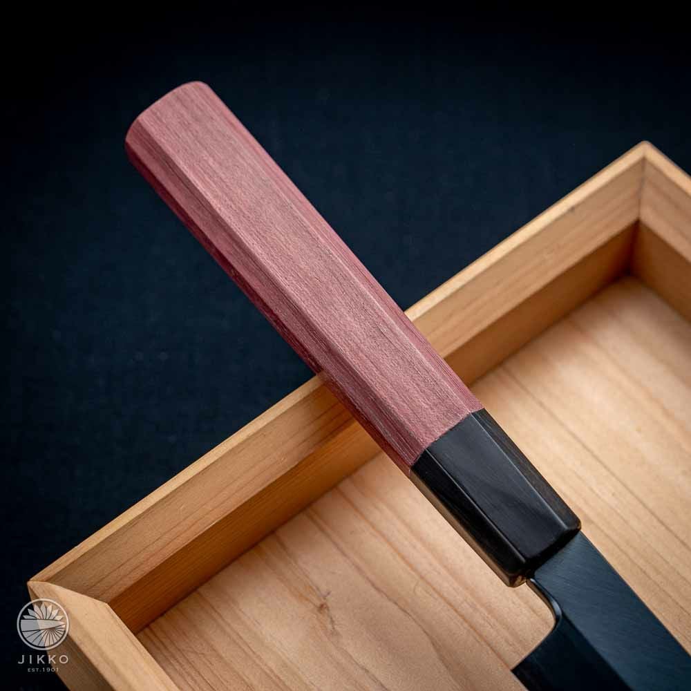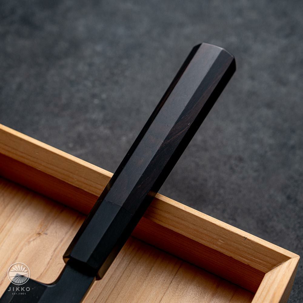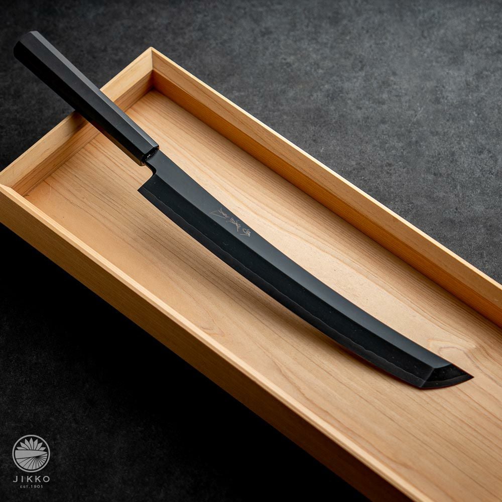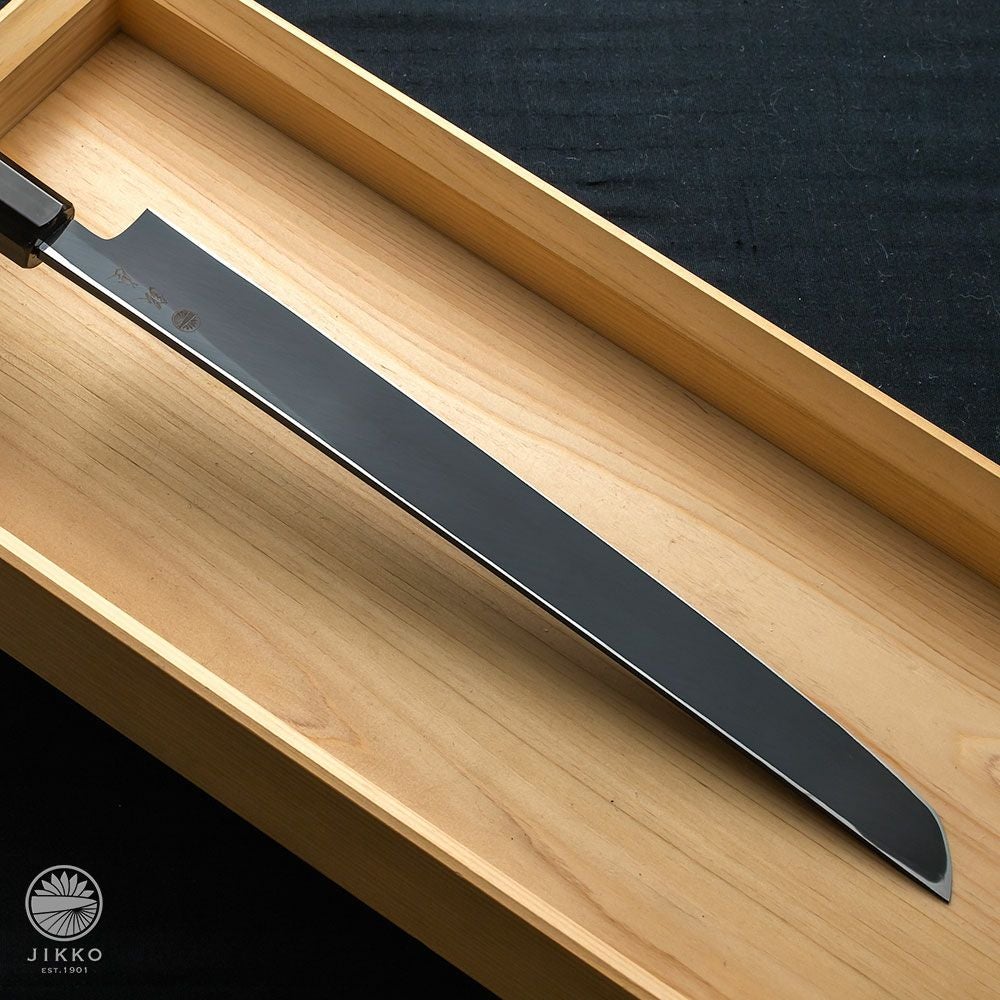 他の画像を見る 【銀座 青】先丸刺身包丁 青紙2号 先丸 黒染 当店価格 ¥ 83,380 税込 +詳しく見る 刃の表面を黒く染めているので、カッコいいデザインに仕上げています。切れ味と持続性に優れている青紙2号を使用しています。 詳細を見る お気に入りに登録する