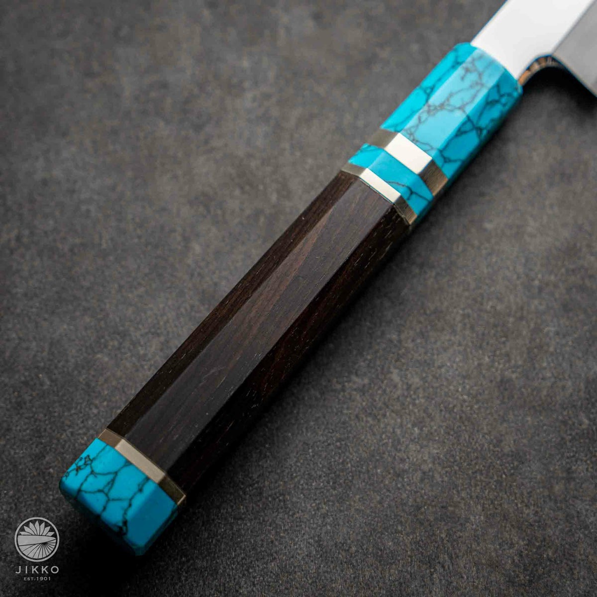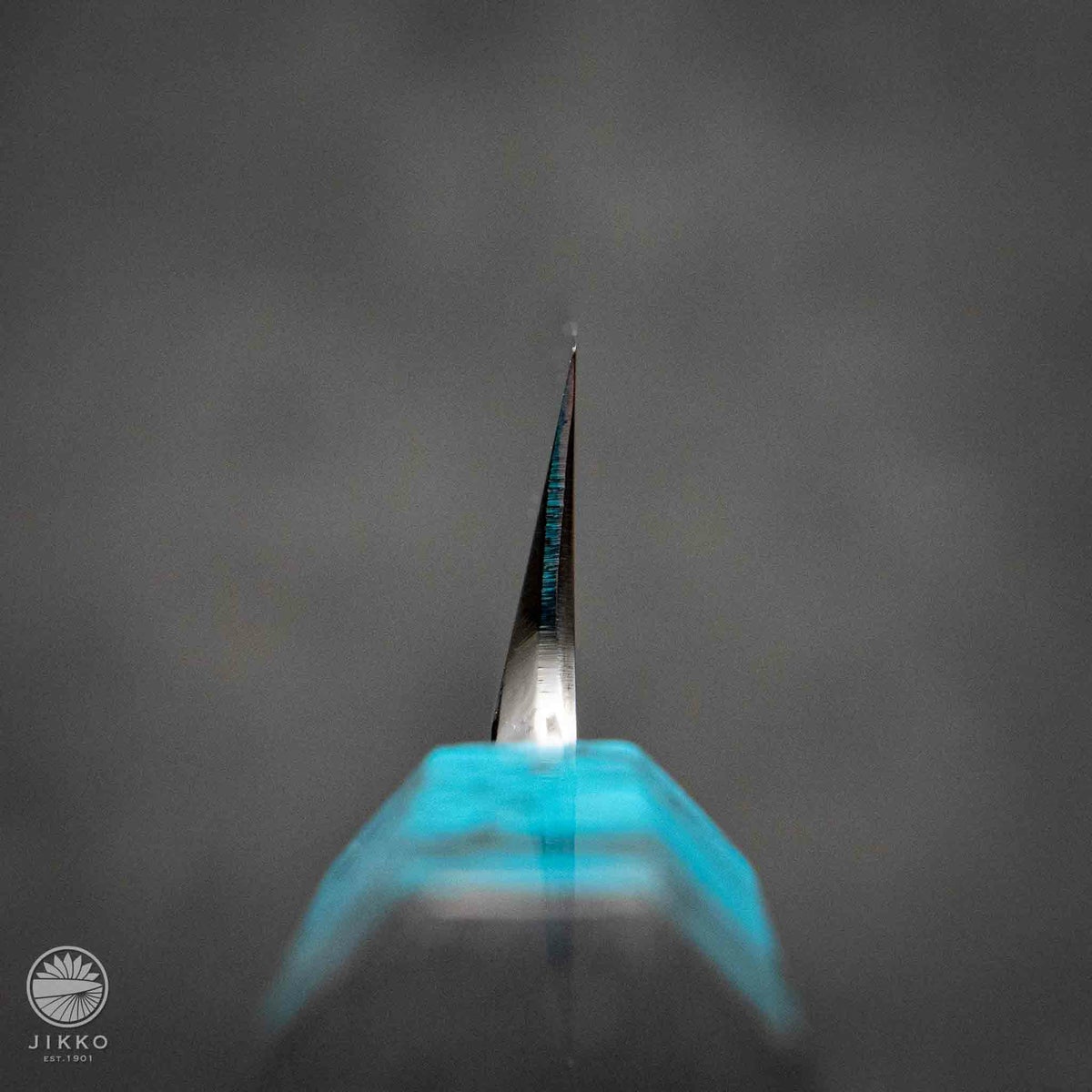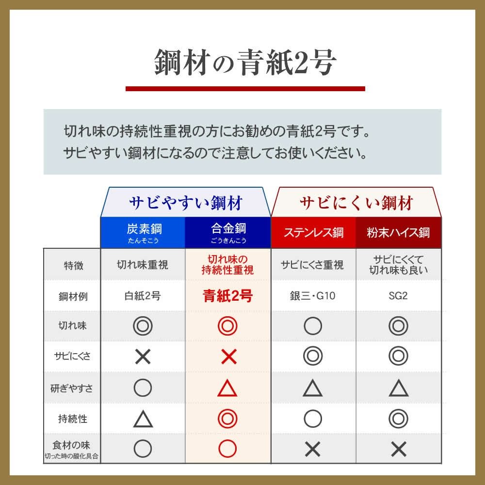 他の画像を見る 【祇園 青】 先丸刺身 青紙2号 当店価格 ¥ 74,580 税込 +詳しく見る 白を基調としたデザインになります。清潔感のあるイメージです。切れ味と持続性に優れている青紙2号を使用しています。 詳細を見る お気に入りに登録する