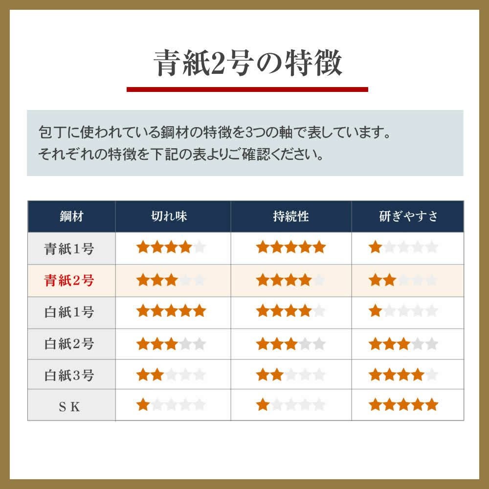 他の画像を見る 【青二】先丸刺身包丁 青紙2号 当店価格 ¥ 54,230 税込 +詳しく見る 切れ味と持続性に優れている青紙2号で製造しているので、中堅料理人にお勧めです。 詳細を見る お気に入りに登録する