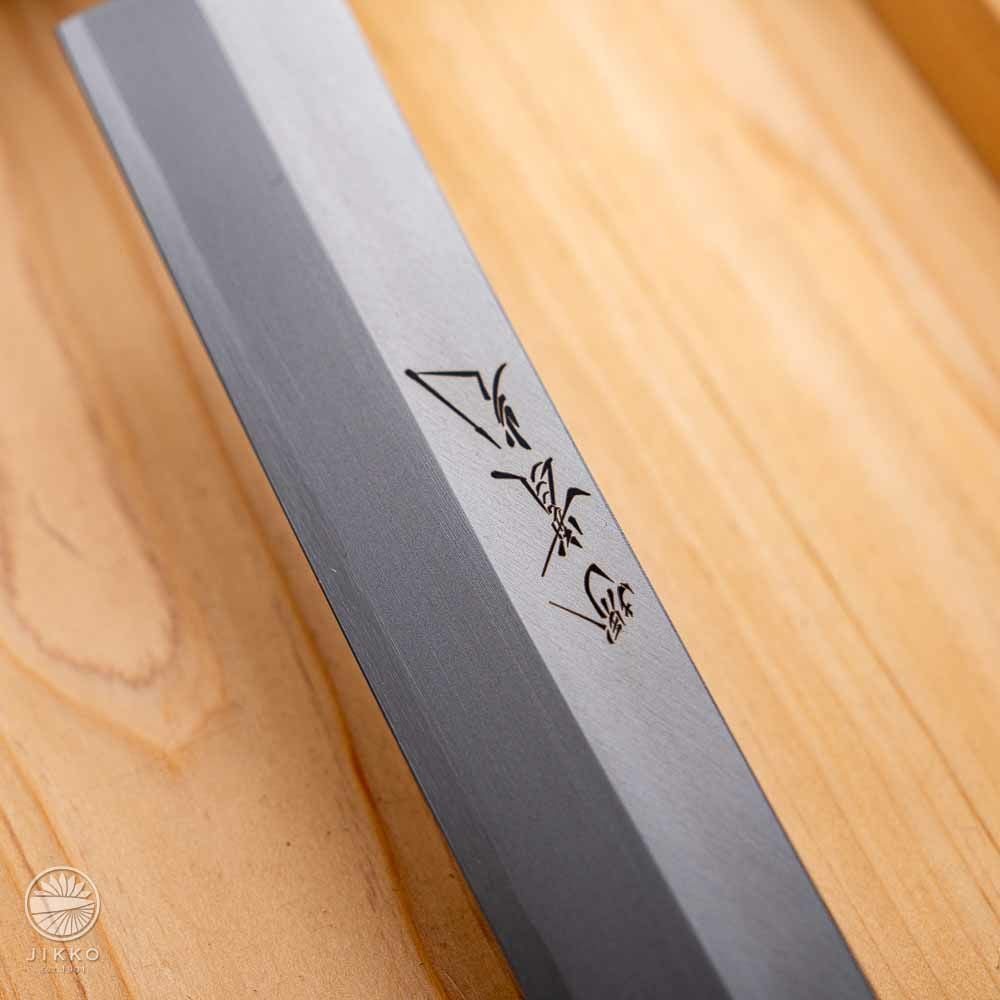 他の画像を見る 【刃 Yaiba 青】 先丸刺身 青紙2号 本刃付け 鏡面 先丸 当店価格 ¥ 103,180 税込 +詳しく見る 實光刃物の最高級の仕上です。鏡面加工と本刃付けをしています。切れ味と持続性に優れている青紙2号を使用しています。 詳細を見る お気に入りに登録する