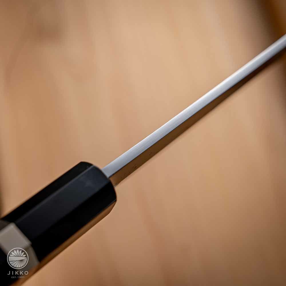 他の画像を見る 【刃 Yaiba 銀三】 先丸刺身 銀3 本刃付け 鏡面 先丸 当店価格 ¥ 90,860 税込 +詳しく見る 實光刃物の最高級の仕上です。鏡面加工と本刃付けをしています。サビにくく切れ味が良い銀三を使用しています。サビにくい包丁をお探しの方にお勧めです。 詳細を見る お気に入りに登録する