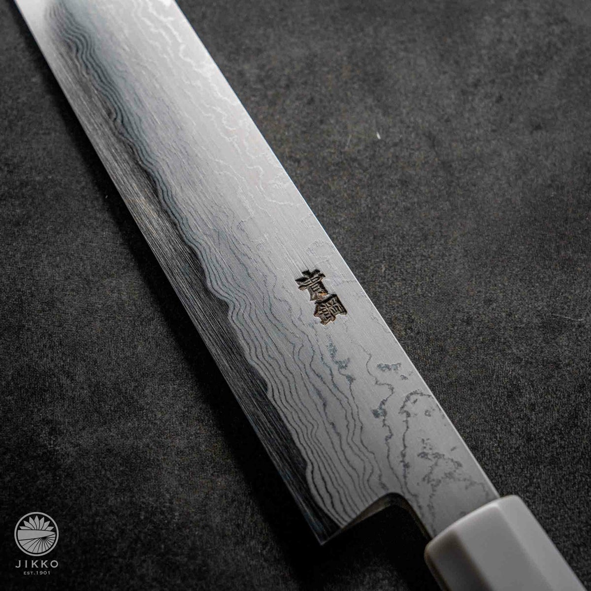 他の画像を見る 【青一 ダマスカス】先丸刺身包丁 青紙1号 ダマスカス 当店価格 ¥ 96,360 税込 +詳しく見る サビる鋼材でトップクラスの青紙1号を使用しています。ダマスカス模様もカッコいいデザインです。 詳細を見る お気に入りに登録する