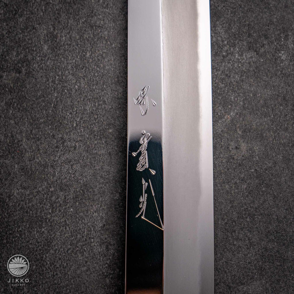 他の画像を見る 【富士山】先丸刺身包丁 白紙3号 本焼 鏡面 先丸 当店価格 ¥ 181,720 税込 +詳しく見る 紋模様の富士山を見やすく浮きただせています。料理人のあこがれの本焼包丁を白紙3号で製造しています。 詳細を見る お気に入りに登録する