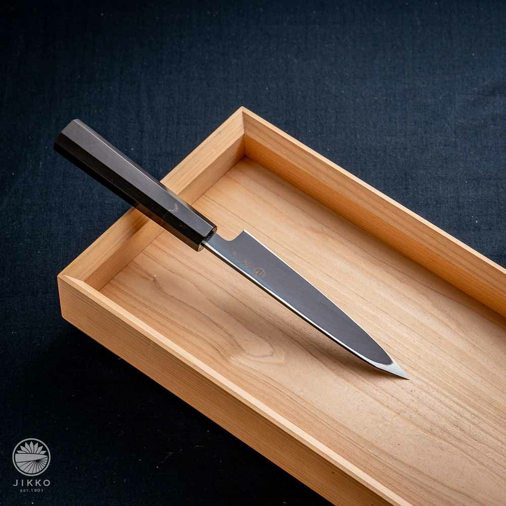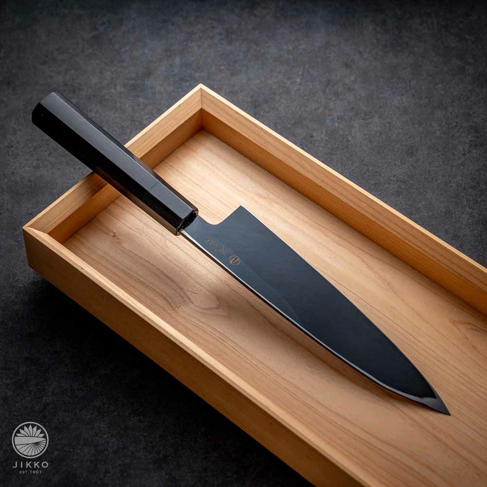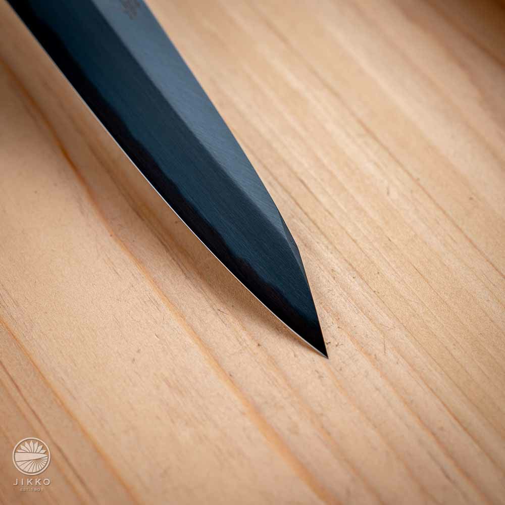 他の画像を見る 【銀座 白】先丸刺身包丁 白紙2号 先丸 黒染 当店価格 ¥ 64,020 税込 +詳しく見る 刃の表面を黒く染めているので、カッコいいデザインに仕上げています。切れ味と研ぎやすさを兼ね備えた白紙2号で製造しているので料理人にお勧めです。 詳細を見る お気に入りに登録する