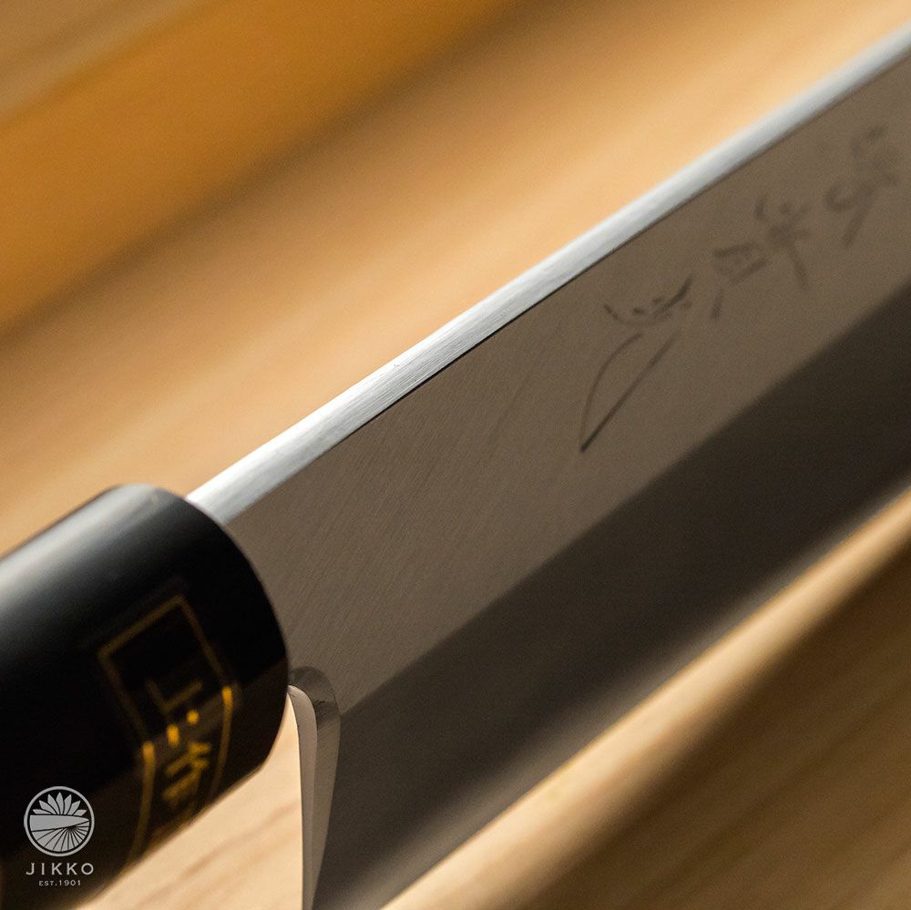 他の画像を見る 【本焼青二】切付刺身包丁 青紙2号 本焼 鏡面 当店価格 ¥ 173,470 税込 +詳しく見る 料理人のあこがれの本焼包丁を青紙2号で製造しています。切れ味の持続性は實光の中でもTOPクラスに良いです。 詳細を見る お気に入りに登録する